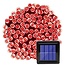 Prachtige Kerstboomverlichting op zonne-energie voor buiten met een lengte van 30 meter in het rood. Met maar liefst 300 rode LED lampjes. Rood licht geeft een opvallende warme kleur en werkt activerend. De kleur van het snoer is donkergroen.